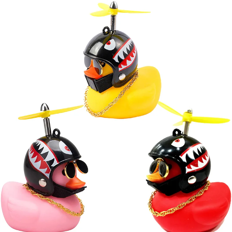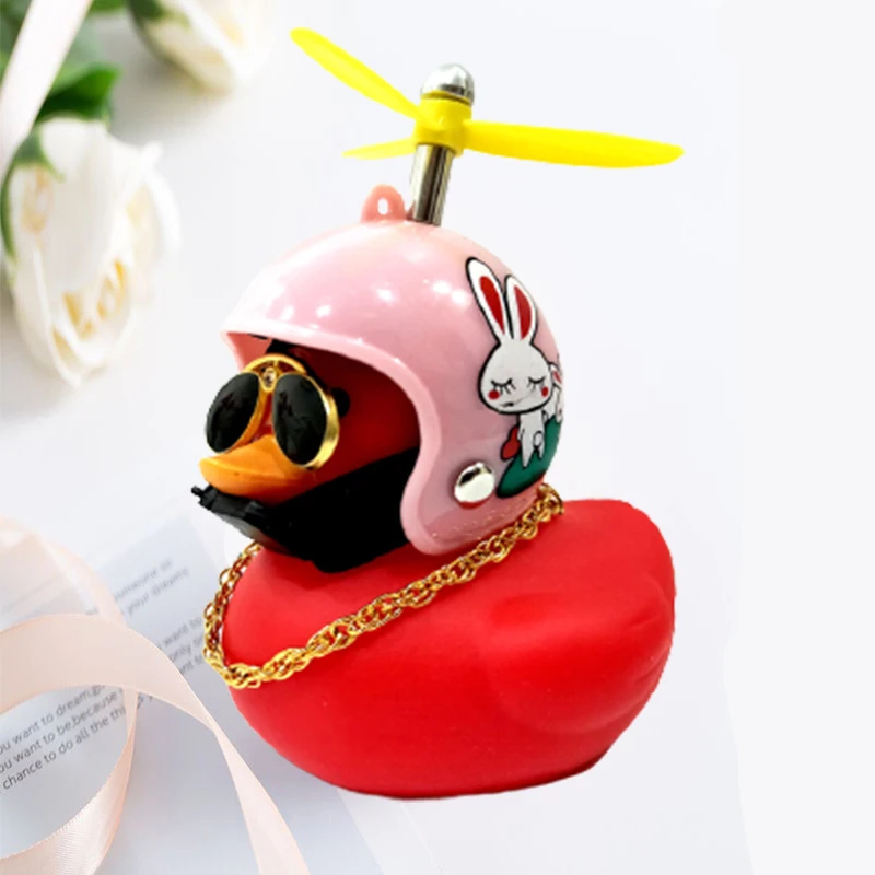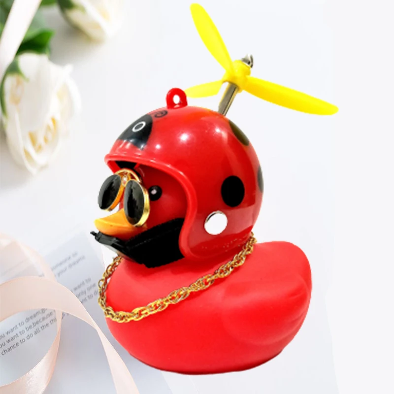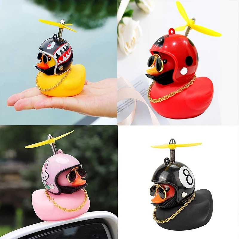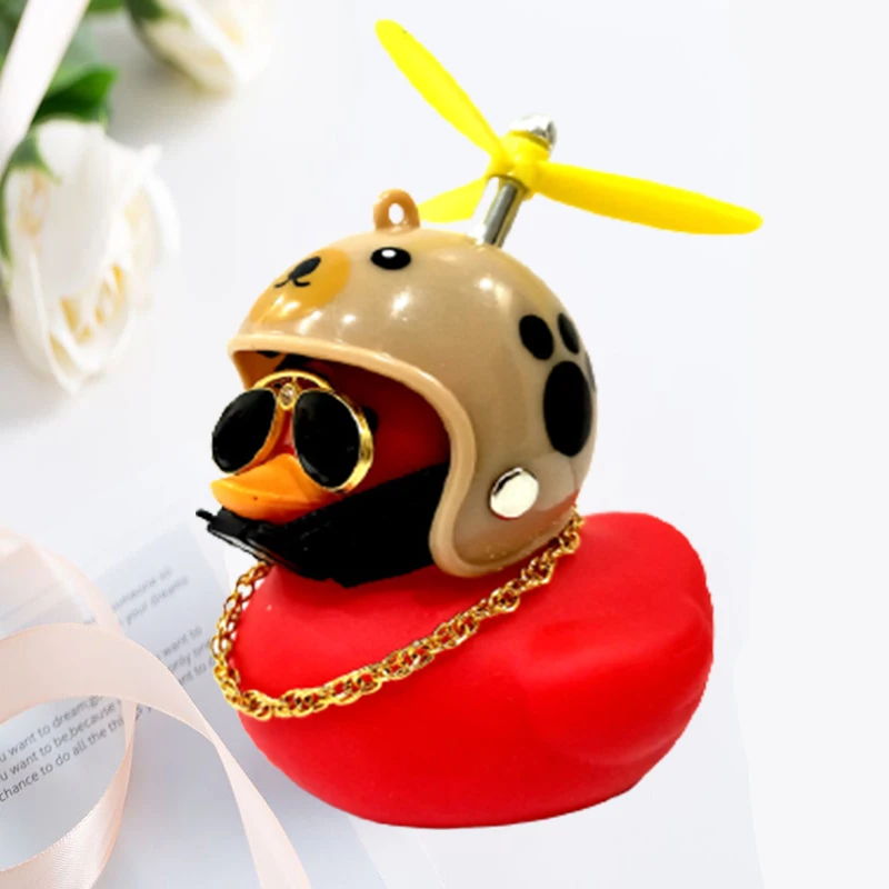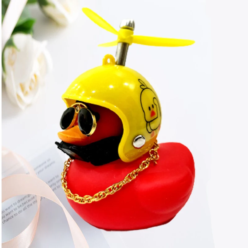 Car Ornaments Cute Little Yellow Duck With Helmet Propeller For Bike Motorcycle Without Lights Red Duck Car Interior Accessories